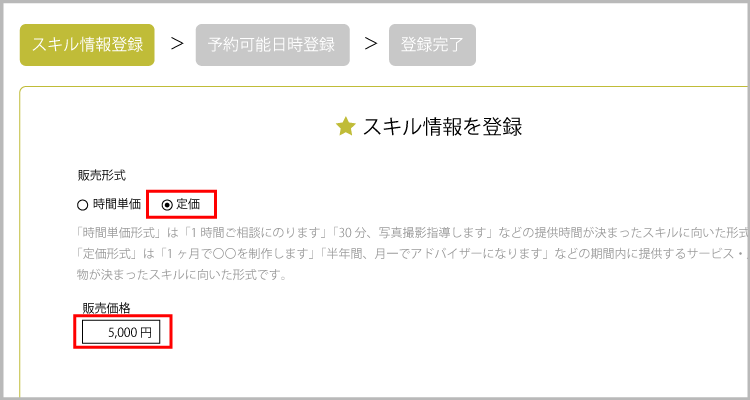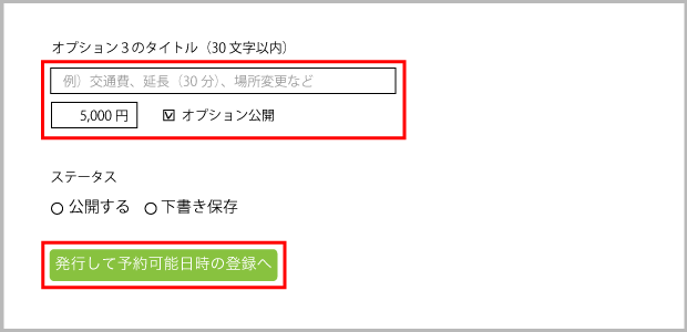・スキルにオプションがある場合は内容、価格を設定しましょう
