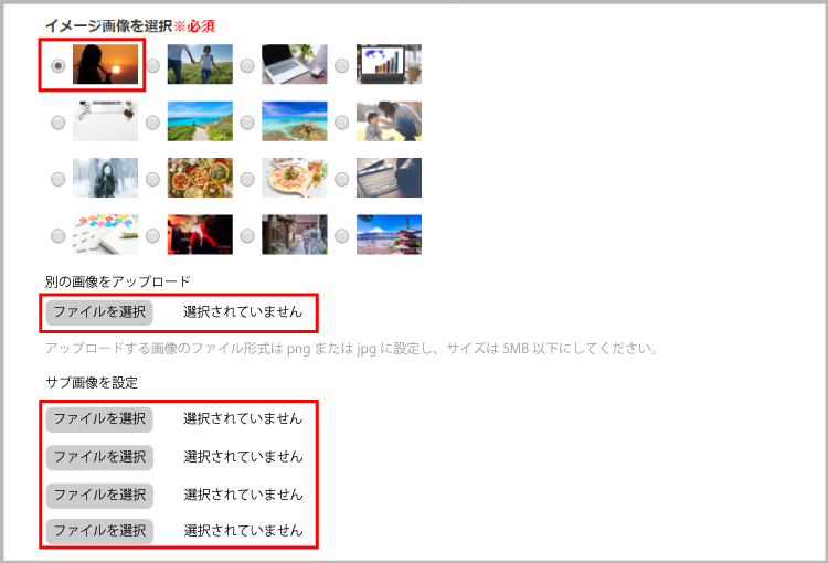 ・オリジナル画像を使用する場合はファイルをアップロードしてください